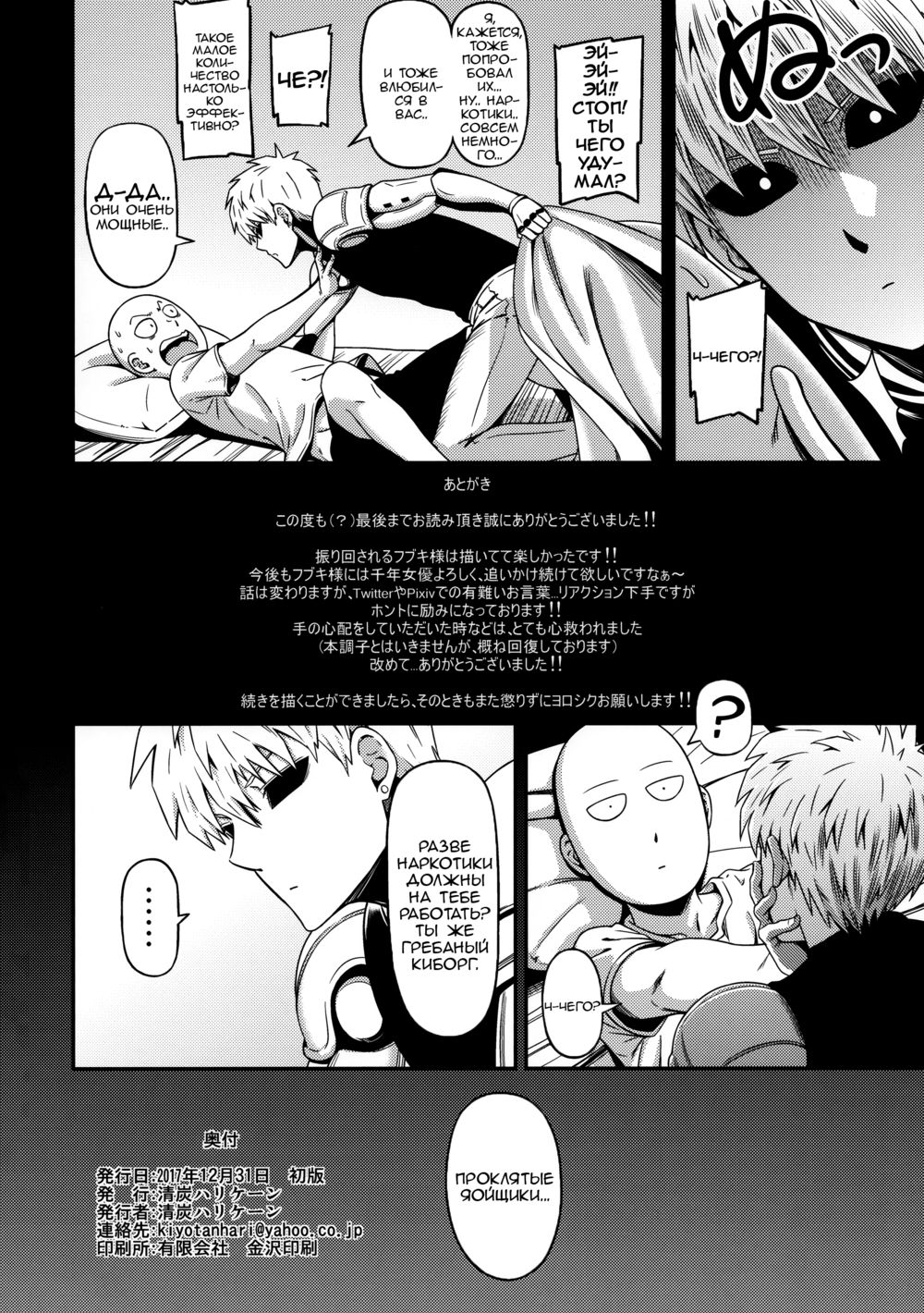kiyosumi hurricaneФубуки решила отомстить Сайтаме с помощью ее хитрого плана, но что-то пошло не так.P.s. при переводе сложилось ощущение что я рисовал больше, чем сам мангака, как же этот сукин сын любит писать в воздухе, дабы закрыть лицо/волосы и пр.Приятного чтения.P.p.s. если найдете недочеты, выскажите их, может, это поможет улучшить качество контента, я ведь еще зеленка.