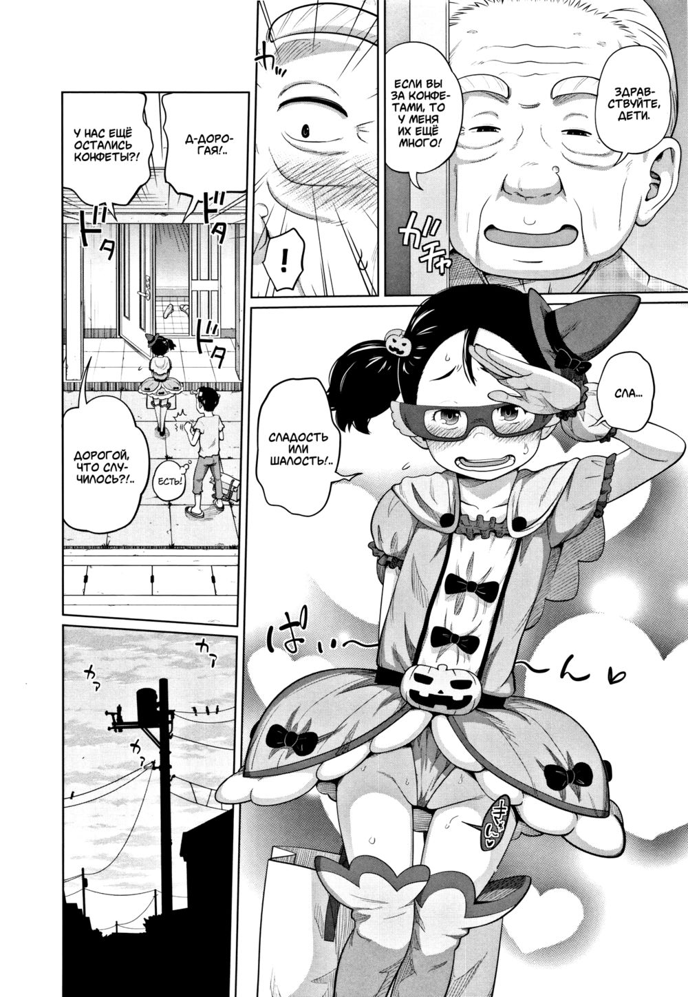 tsubaki jushirouЧего только не сделаешь, что бы защитить честно заработанные сладости во время хеллоуина.П.П. Цензура была, но немного. Пришлось поднапрячь свои кривущие куриные лапки, что бы убрать её. Сделал всё что мог. Надеюсь, что ваша критика утопит меня не до конца... Дискорд канал: D.S.H. Manga - команда художественных переводов.ВК группа: D.S.H. Manga (релизы, арты, мини-переводы)