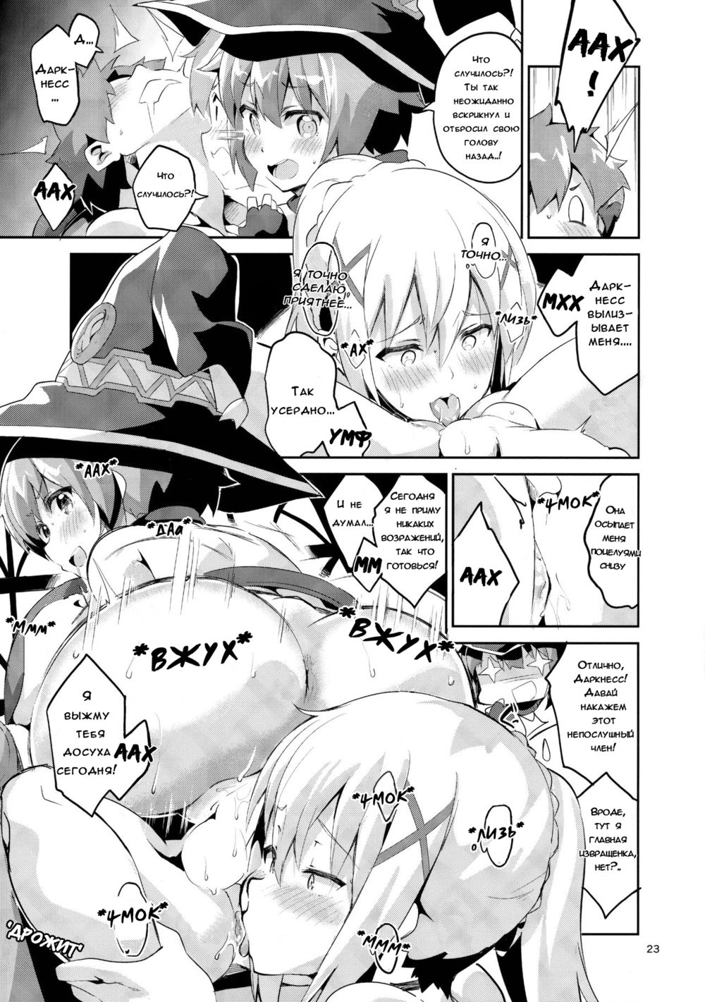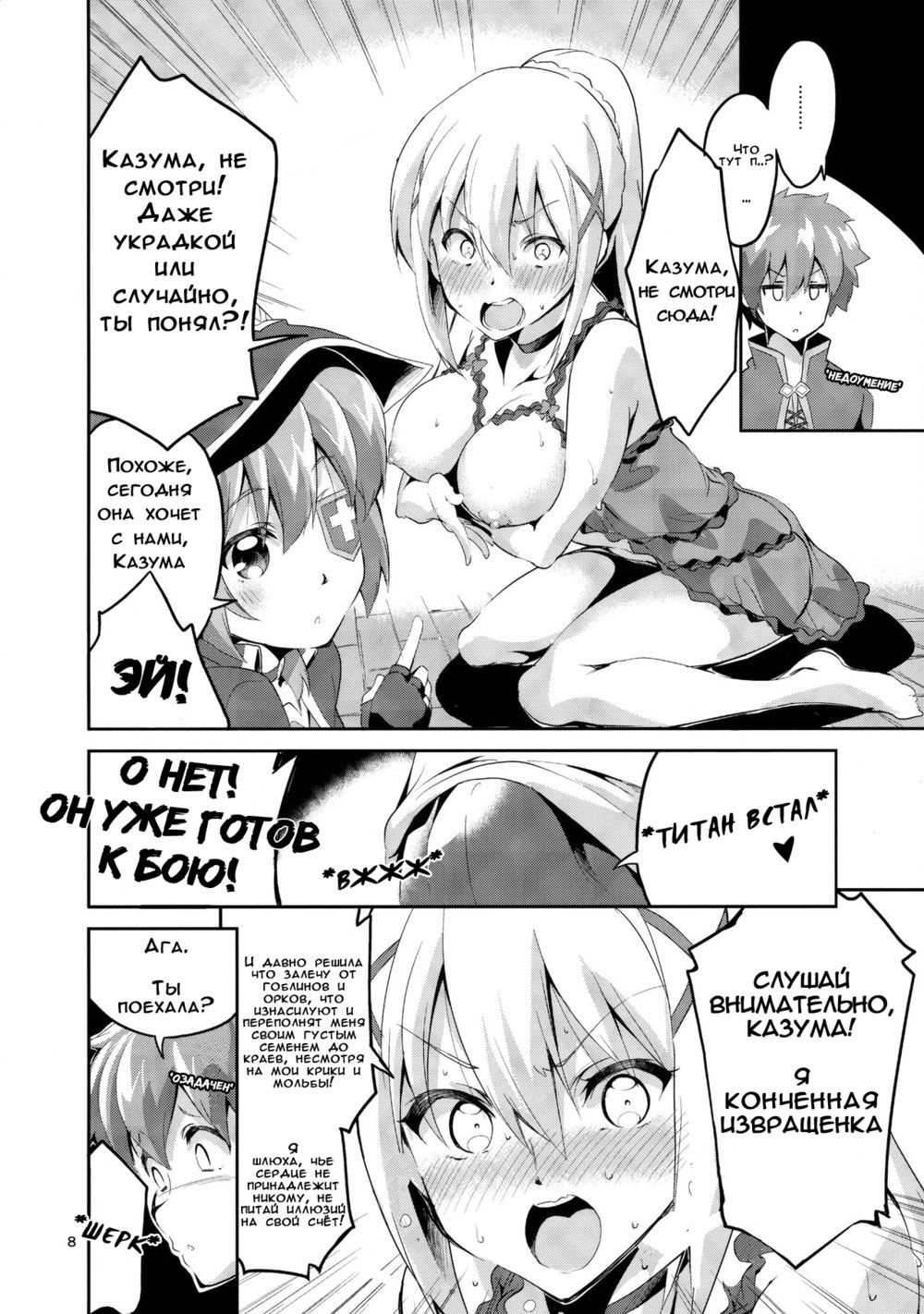 ekakibitТяжелые раздумья Даркнесс о её неуёмных желаниях прерываются нежданным предложением Мегумин устроить тройничок с Казумой... Ведь товарищи должны делиться.Читайте о важных объявлениях под катом! Показать / Скрыть текст
