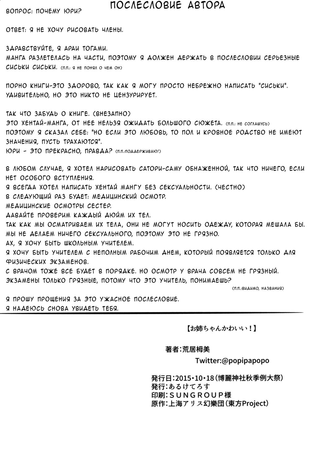 arai togamiПереведено специально для сайта Хентай-тян!Если не хватает тегов, недочеты, ошибки, пожелания - пишите.