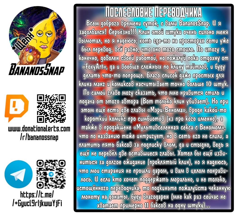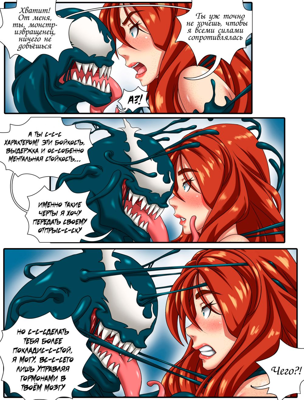 foxyartМэри Джейн надела на фотосессию предложенный костюмчик, который на самом деле оказался Веномом...ПРЕДУПРЕЖДЕНИЕ: Так как это комикс, то читать слева направо!!!P.S. Извиняюсь, что так долго не было обнов, вот держите)))P.P.S. Спасибо «Анониму» за поддержку!!!P.P.P.S. Хоть в сети и существует перевод, но надеюсь, что вам понравится мой вариант)------------------------------------------------------------------------------------------Пожалуйста жмякни банан:
