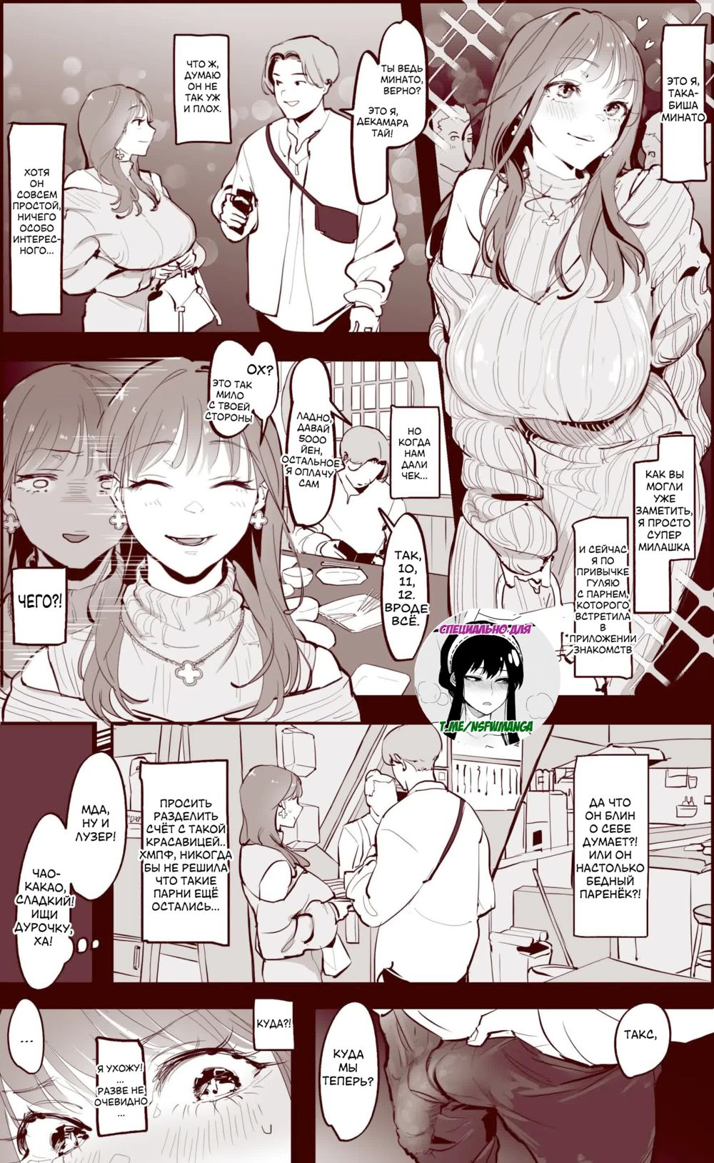 poriuretanМилашка любит погулять с парнями из приложения для знакомств, но этот парень её совсем не впечатлил:Обычная внешностьНе сильно при деньгахДа и манерами не блещетИ так бы они и разошлись, если бы не БОЛЬШАЯ поправочка...Поддержи переводчика подписочкой на канал в телеге. Ему приятно, а вам удобно - https://t.me/+SjTqsYd60DdPrWbHДо новый встреч!