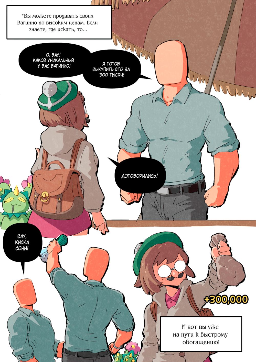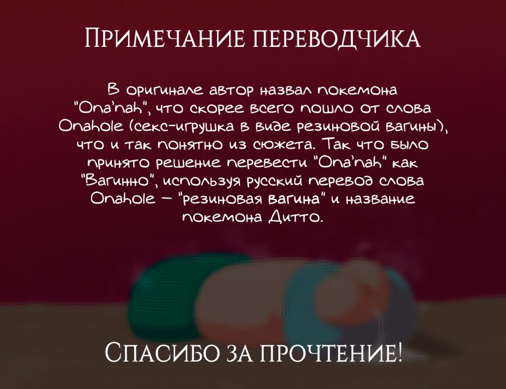 woomochichiВагинно - новый вид покемона, чье название недвусмысленно намекает на его способности и вид. Для одних это была бы просто шутка, вот только такой покемон идеально подходит для продажи и личных утех. Преобразовываясь, он принимает форму лона девушки, на которую ему указали. Но никто не предупреждал, что между покемоном и "жертвой" устанавливается связь. Что же будет, когда один из таких покемонов попадет в руки фаната Сони, который давно мечтал с ней "сблизится"?