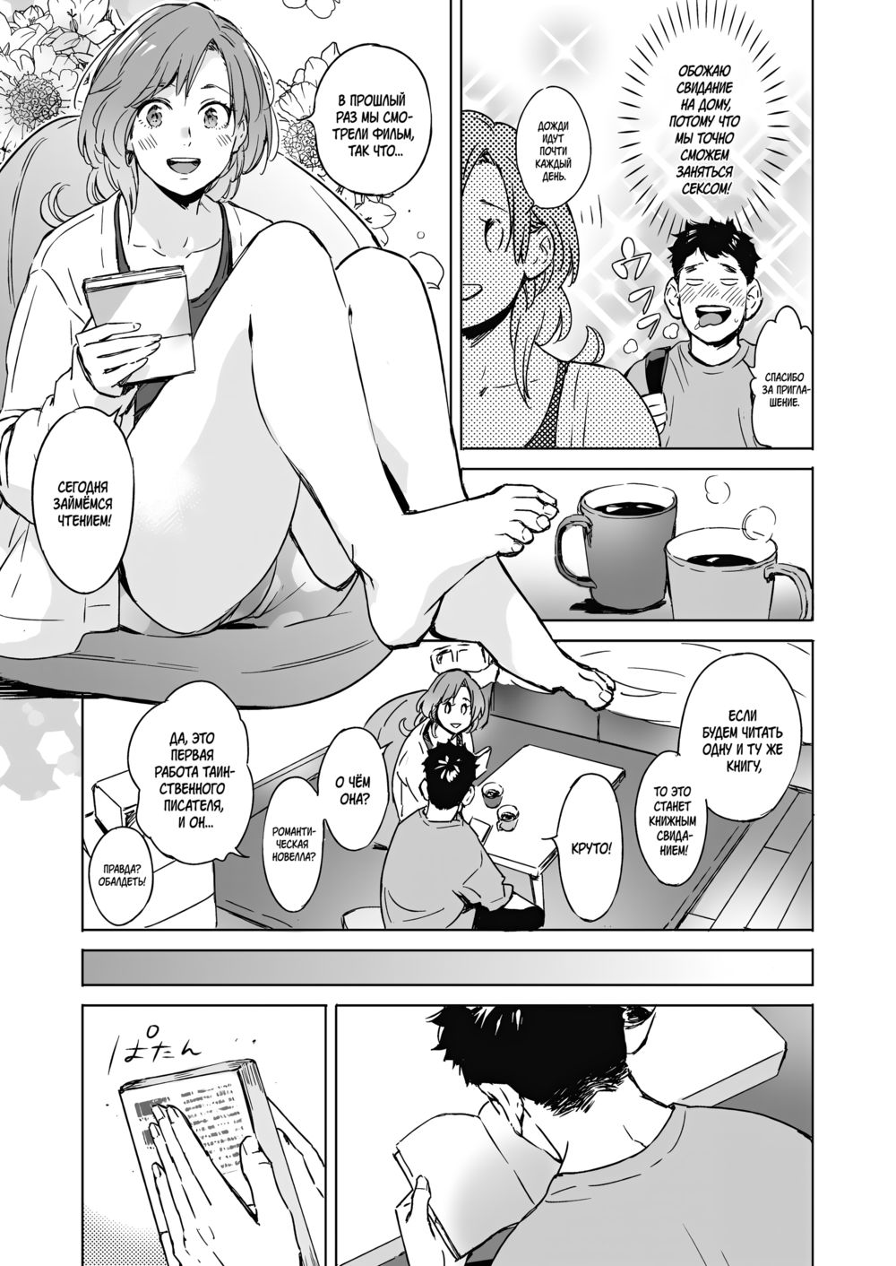 mori manpeiНовая-старая работа Мори Манпея!Что делать, если на каждом свидании твоя девушка норовит постоянно куда-то улизнуть? Конечно же, провести его у неё дома! Наш дискорд: D.S.H. Manga - команда художественных переводов.ВК группа: D.S.H. Manga (релизы, арты, мини-переводы)Приятного чтения!