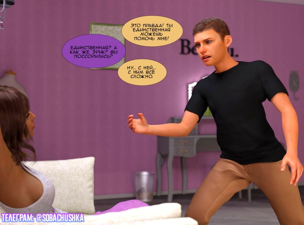 kizaru3dФрэнк ищет способы развить свои отношения с Эрикой... И это у него получается... Покупая ВИП подписку в телеграме, вы показываете переводчице, что данный комикс Вам интересен. Тем самым я продолжаю его переводить. К тому же, следующая часть комикса уже в ВИП канале: https://t.me/Sobachushka