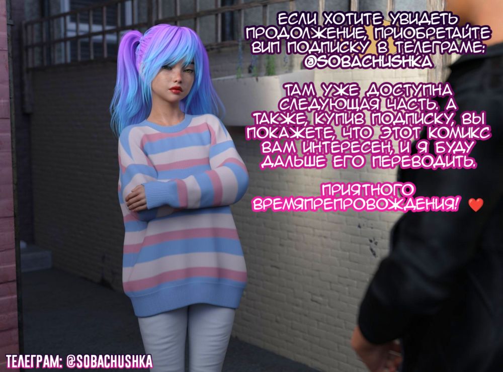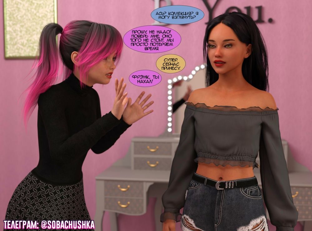 kizaru3dЭшли и Эрика соревнуются между собой, кто привлекательнее и сексуальнее Покупая ВИП подписку в телеграме, вы показываете переводчице, что данный комикс Вам интересен. Тем самым я продолжаю его переводить. К тому же, следующая часть комикса уже в ВИП канале: https://t.me/Sobachushka