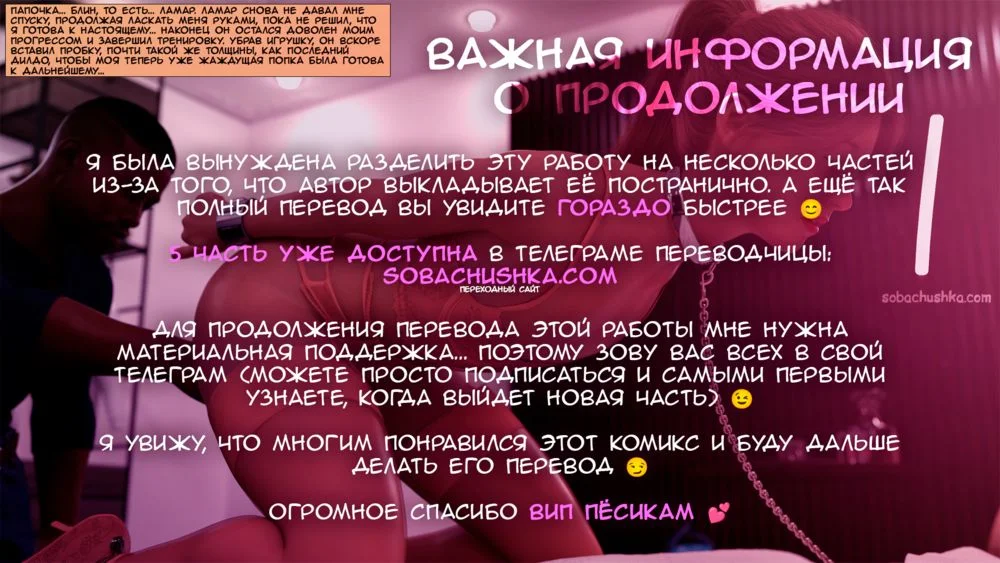 kizaru3dЛамар наказывает неопытную шлюшку за её дерзость... Следующая часть и другие работы этого автора уже доступны в телеграм-канале Собачушки: https://sobachushka.com/ (переходный сайт)Поддержать перевод: https://boosty.to/sobachushkaСпасибо, Любимые