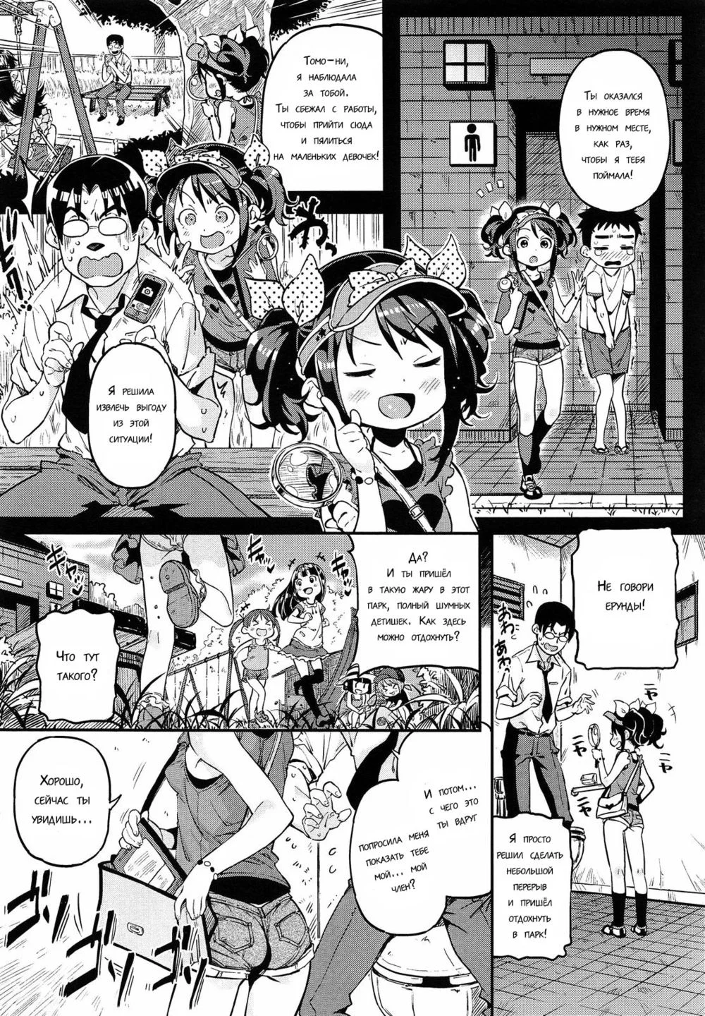 kinkuОдиннадцатилетняя пятиклассница Харука-тян за летние каникулы должна сделать исследовательский проект по изучению мужских пенисов. Она уже исследовала пенисы всех своих одноклассников, теперь пришла очередь взрослого соседа.Это первый русский перевод комикса мангаки Kinku.